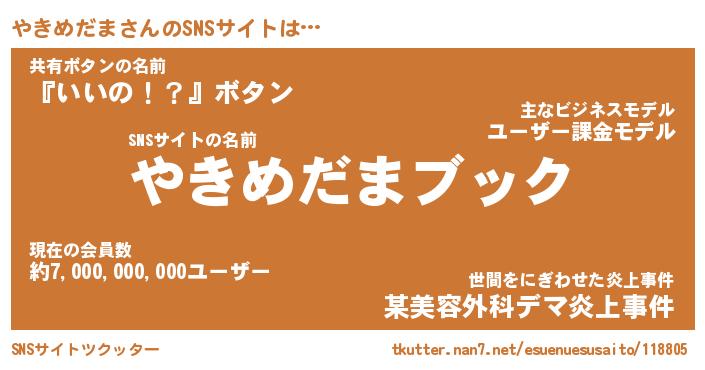 | 男性向けラノベタイトル風あだ名 | 『ヤキメダマアートオンライン』 |