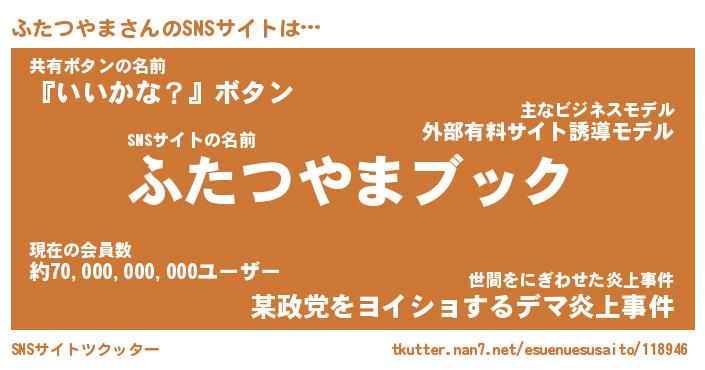 | 男性向けラノベタイトル風あだ名 | 『フタツヤマアートオンライン』 |