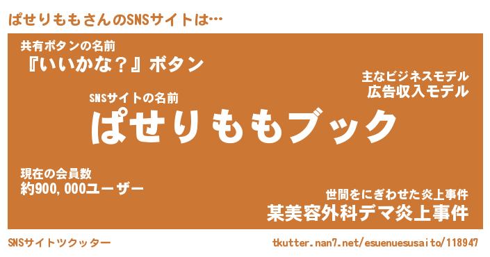 | 肩書あだ名 | 『ぱせりもも社長』『ぱせりもも国家主席』 |