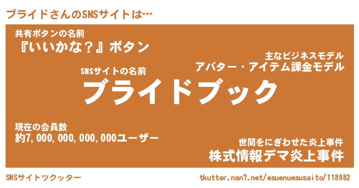| 意味不明あだ名 | 『ペロリンブライド』『永久保存ブライド』 |