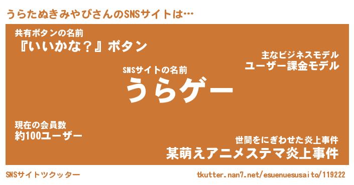 | ヘコむあだ名 | 『うらにー』『なまこ酢』『うらお』 |