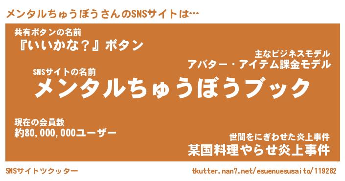 | 男性向けラノベタイトル風あだ名 | 『メンタルチュウボウアートオンライン』 |