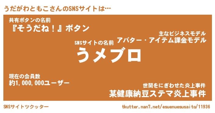 | ヘコむあだ名 | 『うだにゅー』『つくし』『うだお』 |