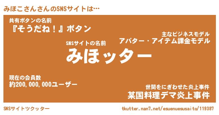 | 胡散臭い通販商品みたいなあだ名 | 『億万長者になれる水晶球…その名も「みほこさん」』 |
