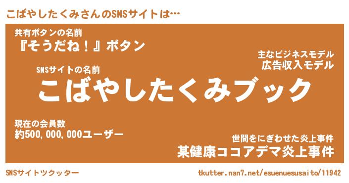 | 肩書あだ名 | 『こばやしたくみ店長』 |