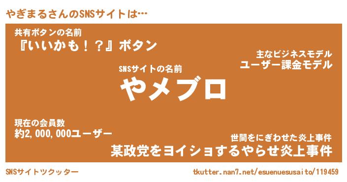 | 肩書あだ名 | 『やぎまる店長』『やぎまる総理大臣』 |