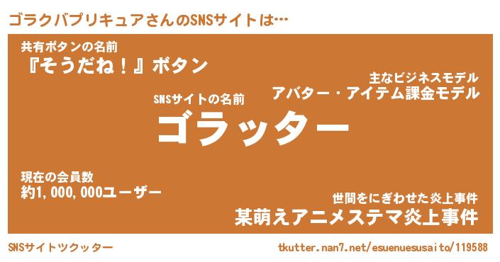 | 男性向けラノベタイトル風あだ名 | 『ゴラクバプリキュアアートオンライン』 |