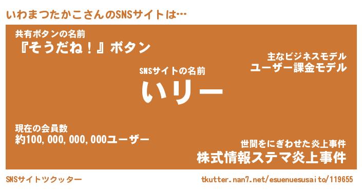 | 肩書あだ名 | 『いわまつたかこ店長』 |