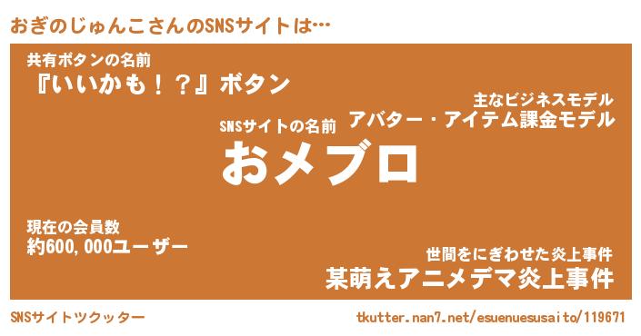 | 男性向けラノベタイトル風あだ名 | 『オギノジュンコアートオンライン』 |