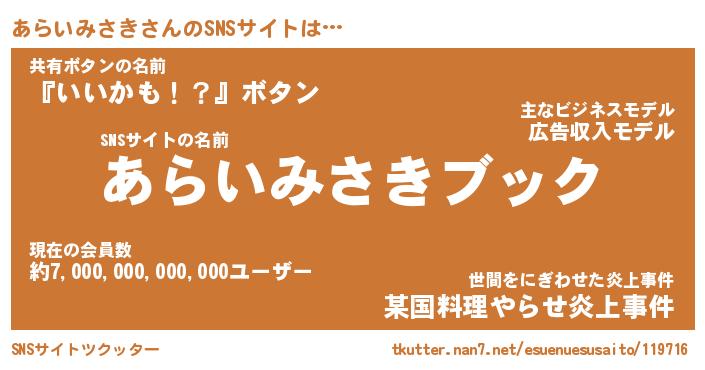 | ヒーロー風カッコイイあだ名 | 『スーパーアライミサキ』『炎刃騎士アラ』 |