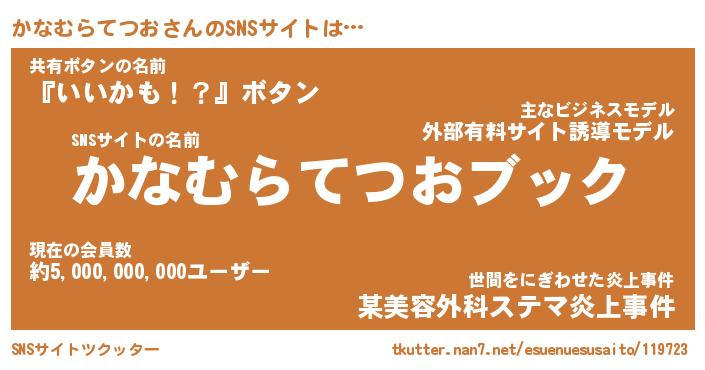 | 女子向けラノベタイトル風あだ名 | 『誰かこのかなむらてつおを説明してください! ~契約から始まるウェディング~』 |