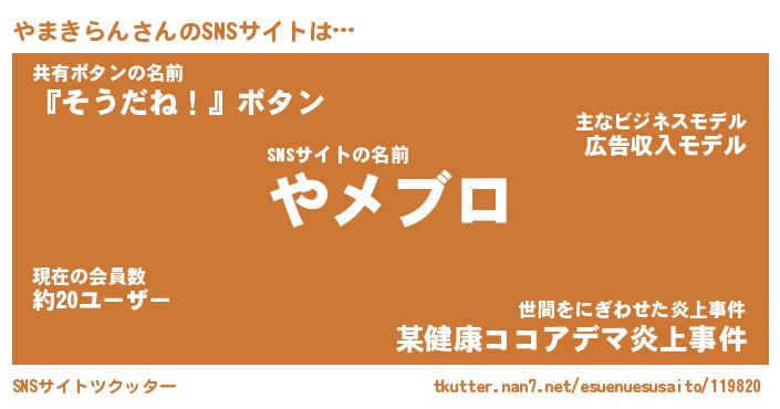 | 男性向けラノベタイトル風あだ名 | 『ヤマキランアートオンライン』 |