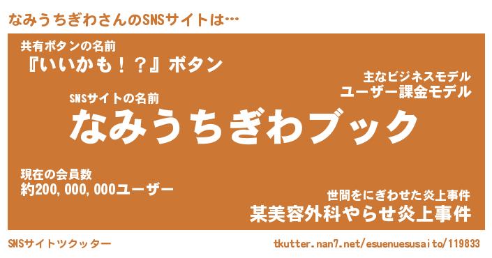 | 男性向けラノベタイトル風あだ名 | 『ナミウチギワアートオンライン』 |