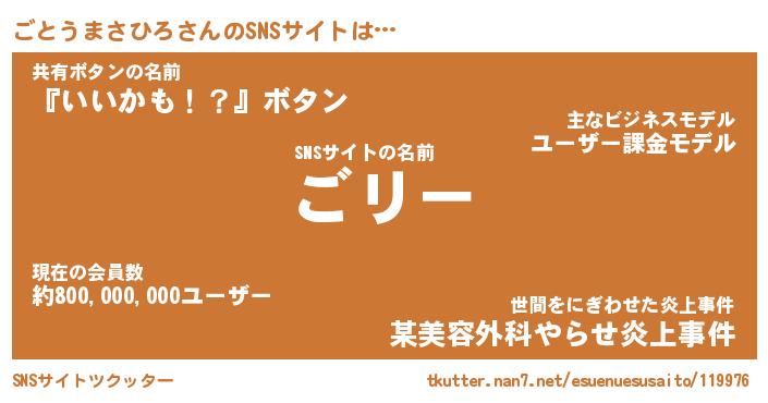 | ヘコむあだ名 | 『ごともー』『なまこ酢』『ごとっぺ』 |