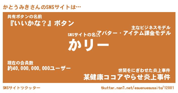 | ヒーロー風カッコイイあだ名 | 『スーパーカトウミキ』『幻影騎士カト』 |