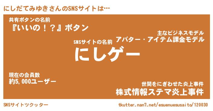 | ヘコむあだ名 | 『にしにゅー』『レバニラ』『にしを』 |