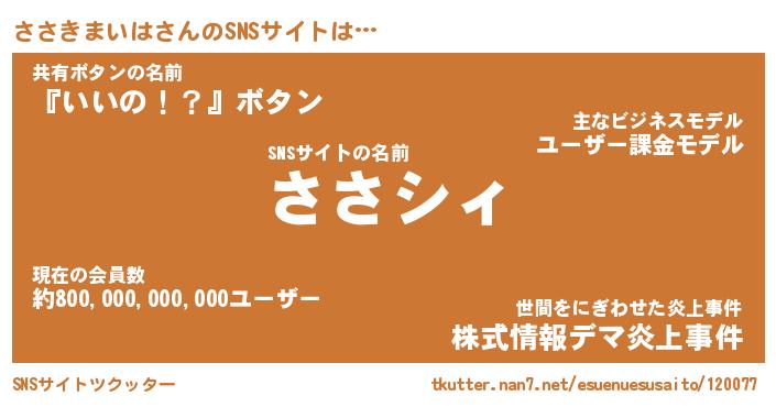 | ヒーロー風カッコイイあだ名 | 『スーパーササキマイハ』『黄金騎士ササ』 |