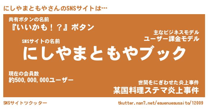 | 胡散臭い通販商品みたいなあだ名 | 『億万長者になれる水晶球…その名も「にしやまともや」』 |