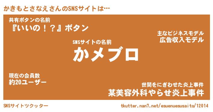 | 男性向けラノベタイトル風あだ名 | 『カキモトサナエアートオンライン』 |
