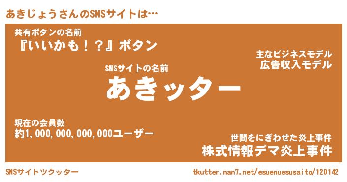 | 男性向けラノベタイトル風あだ名 | 『アキジョウアートオンライン』 |