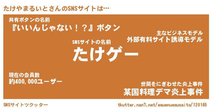 | ヘコむあだ名 | 『たけもー』『豆乳』『たけっちょ』 |