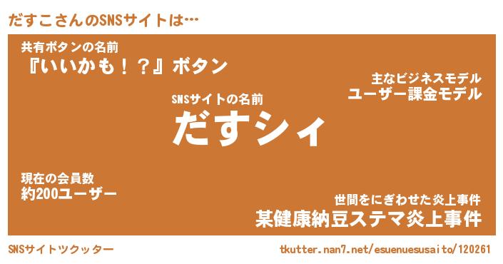 | 女子向けラノベタイトル風あだ名 | 『(仮)だすこのやんごとなき事情』 |