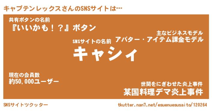 | ツイッター | キャプテンレックスさんのツイッターID『renkon_man』 |