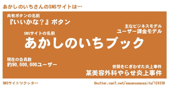 | 胡散臭い通販商品みたいなあだ名 | 『億万長者になれるブレスレット…その名も「あかしのいち」』 |