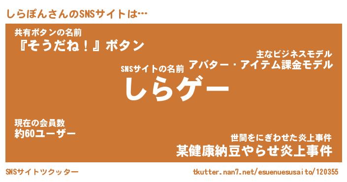 | 胡散臭い通販商品みたいなあだ名 | 『必ず成功する霊験あらたかなお札…その名も「しらぽん」』 |