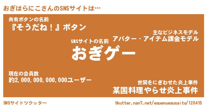 | 伝説のあだ名 | 『伝説のスナイパーおぎはらにこ』 |