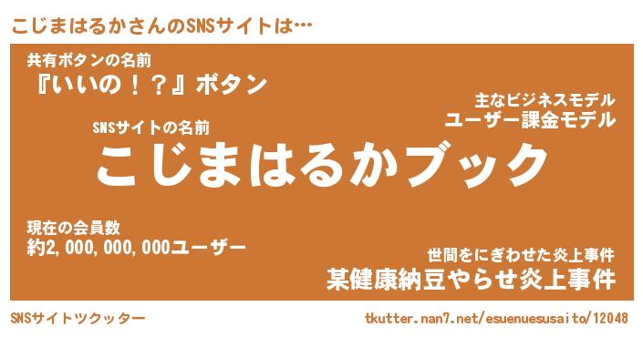 | ツイッター | こじまはるかさんのツイッターID『namakemono_kun』 |