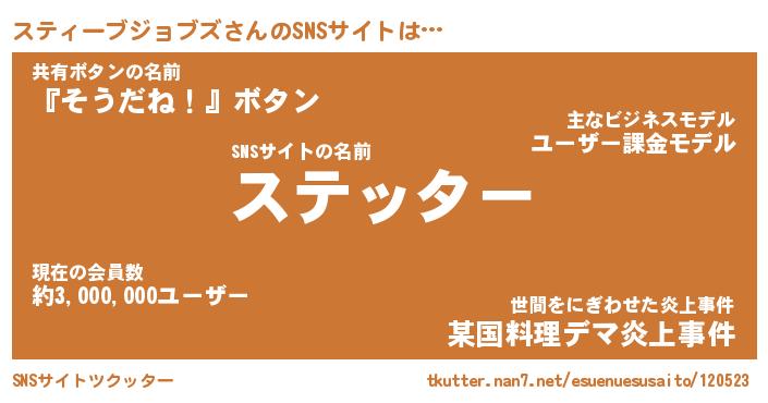 | 胡散臭い通販商品みたいなあだ名 | 『億万長者になれる水晶球…その名も「スティーブジョブズ」』 |