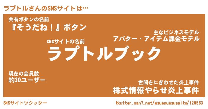 | 意味不明あだ名 | 『ペロリンラプトル』『永久保存ラプトル』 |