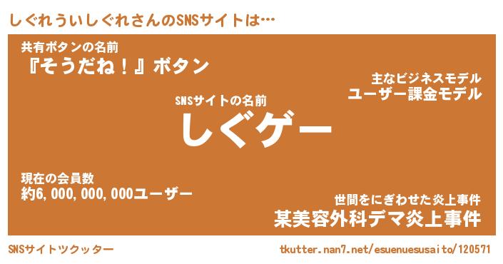 | ヘコむあだ名 | 『しぐにゅー』『つくし』『しぐを』 |