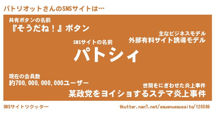 | 男性向けラノベタイトル風あだ名 | 『パトリオットの憂鬱』 |