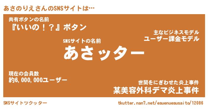 | 胡散臭い通販商品みたいなあだ名 | 『億万長者になれる水晶球…その名も「あさのりえ」』 |