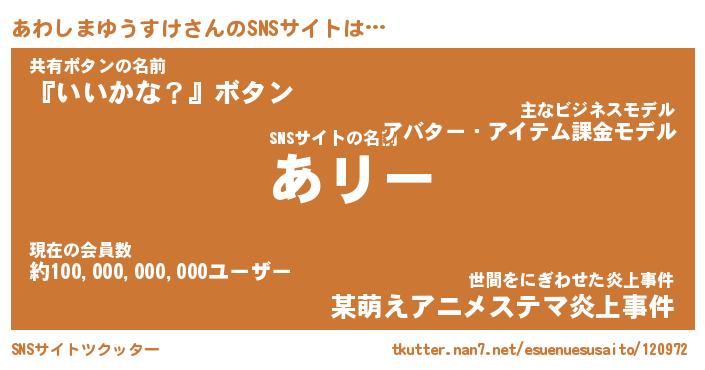 | 意味不明あだ名 | 『ペロリンあわしまゆうすけ』 |