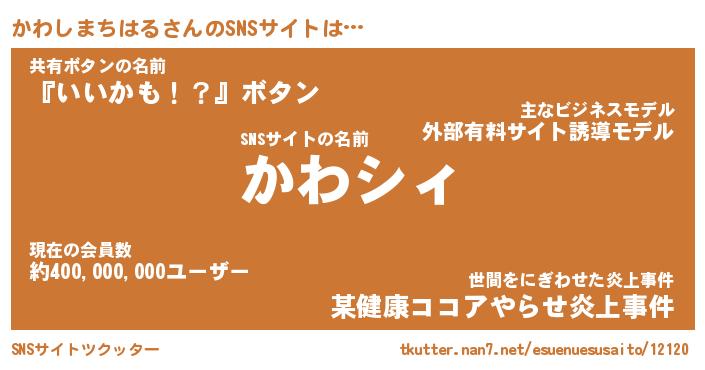 | 胡散臭い通販商品みたいなあだ名 | 『必ず成功する霊験あらたかなお札…その名も「かわしまちはる」』 |