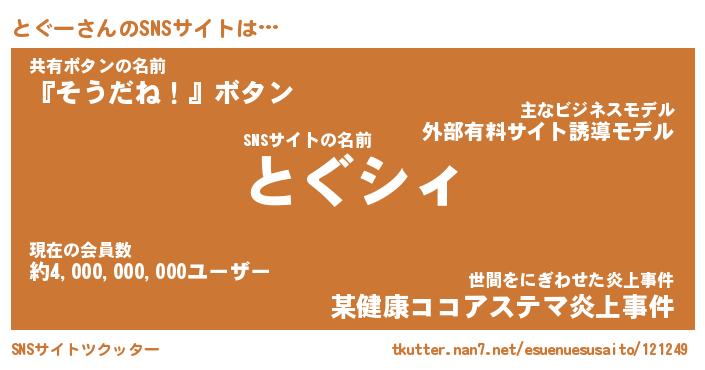 | ヘコむあだ名 | 『とぐにゅー』『つくし』『とぐを』 |
