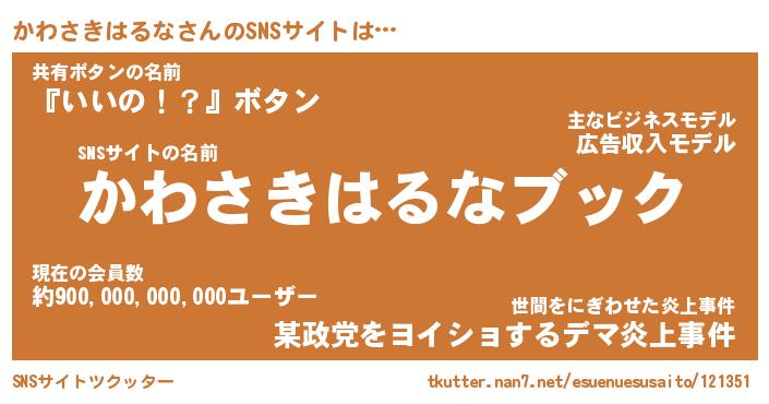 | 胡散臭い通販商品みたいなあだ名 | 『億万長者になれる水晶球…その名も「かわさきはるな」』 |