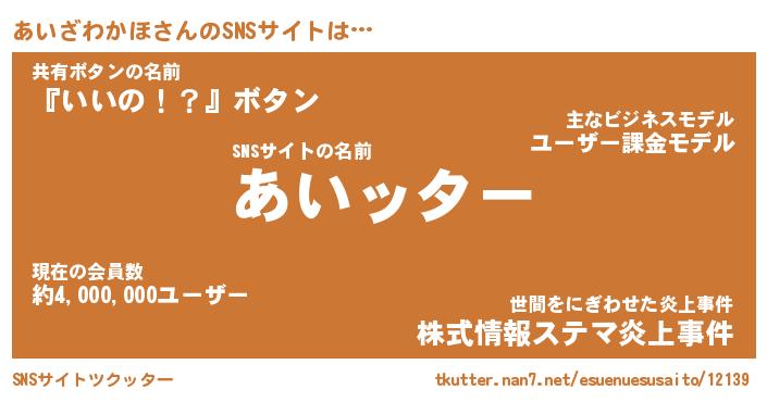 | 草はえルンゴwww …「ツクッター」 | 12月29日 07:12 |