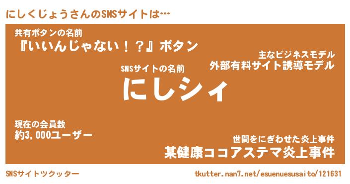 | ポケモン風あだ名 | 『ニシチュウ』『ニシクダネ』 |