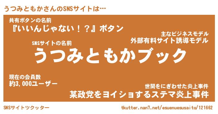 | 胡散臭い通販商品みたいなあだ名 | 『億万長者になれるブレスレット…その名も「うつみともか」』 |