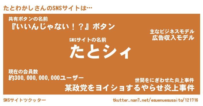 | 男性向けラノベタイトル風あだ名 | 『たとわかしの憂鬱』 |