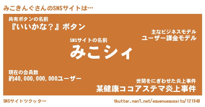 | ファンタジー風あだ名 | 『ミコフェル』『エターナルミコキングー』 |
