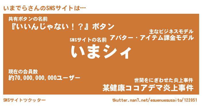 | 胡散臭い通販商品みたいなあだ名 | 『必ず成功するブレスレット…その名も「いまでら」』 |