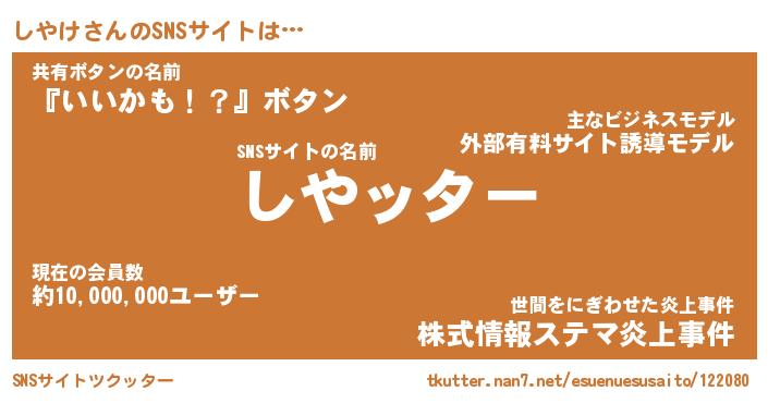 | 草はえルンゴwww …「ツクッター」 | 12月29日 07:12 |