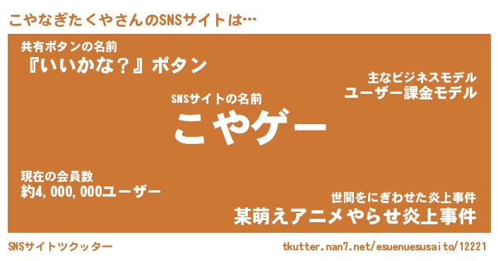 | 女子向けラノベタイトル風あだ名 | 『(仮)こやなぎたくやのやんごとなき事情』 |