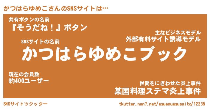 | 肩書あだ名 | 『かつはらゆめこ御曹司』 |