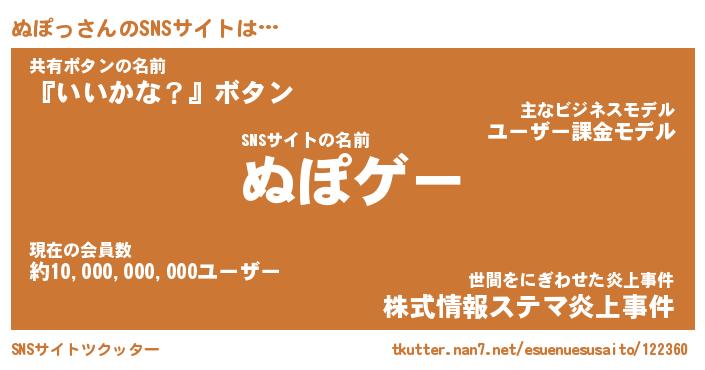 | ヘコむあだ名 | 『ぬぽにゅー』『豆乳』『ぬぽお』 |
